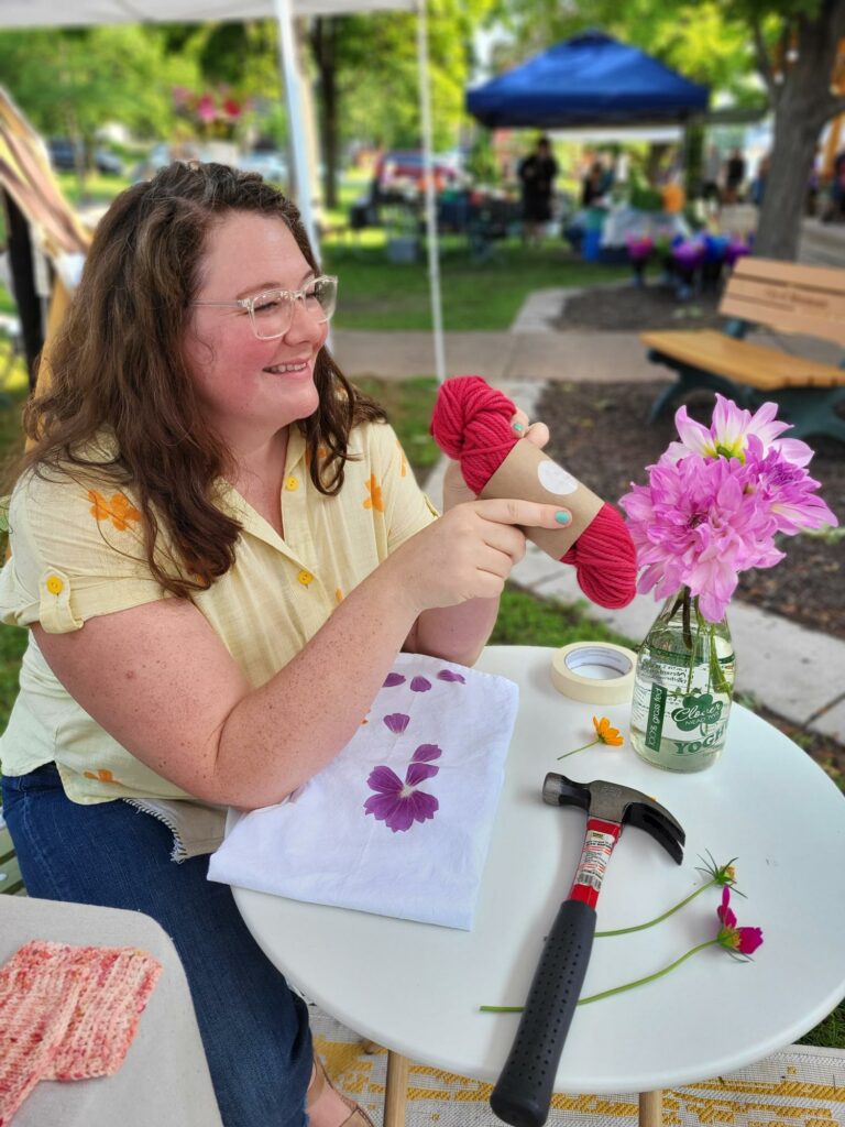 Britta Harris is a natural dye and fiber artist from Chippewa Falls, Wisconsin. Her natural dye practice focuses on seasonal foraging and finding color in her own backyard. She has worked in public education for 18 years and loves teaching outdoors and providing students with hands-on experiences to help build their interest and curiosity.