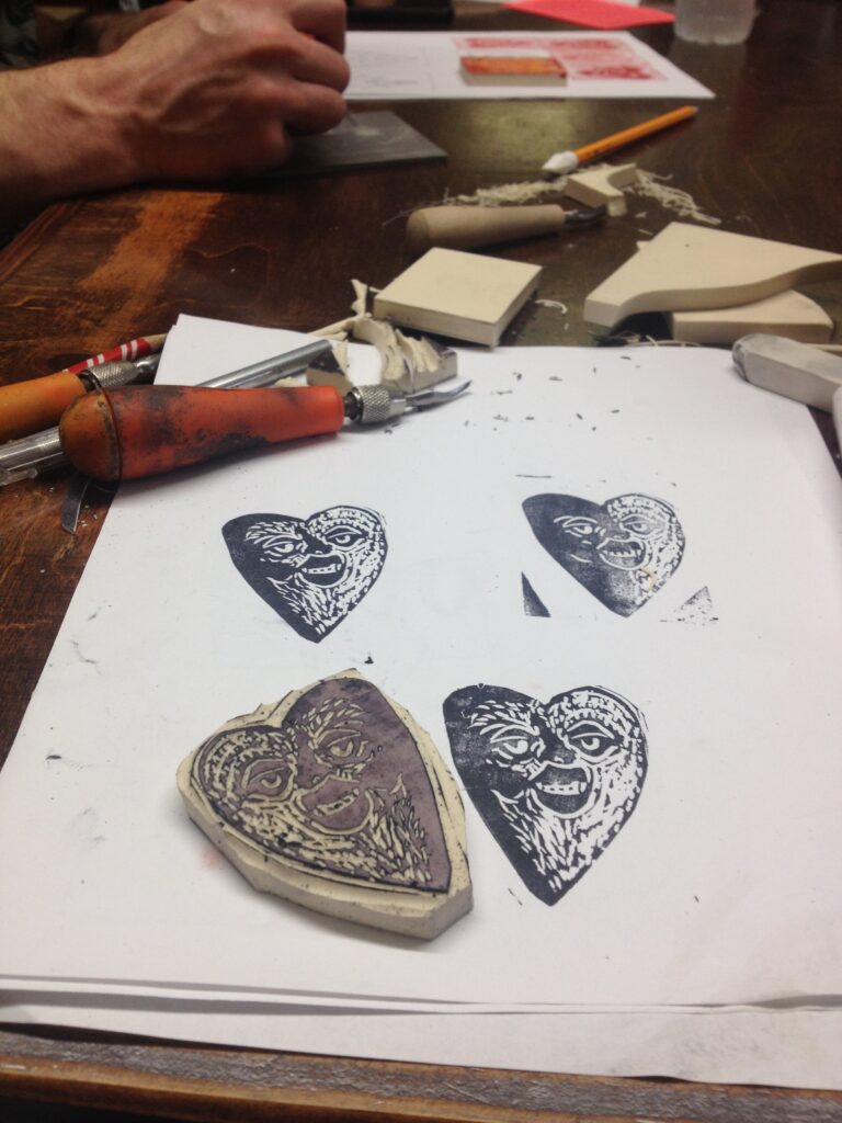 Each participant will receive a 4×5-inch carving block and will have the opportunity to print several paper bags to take home. Fill them with sand and candles, or use battery-operated lights to brighten your space. You will also take home your custom stamp to continue creating on your own.