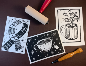 RegisterUse linocut tools to carve rubber stamps and then use those stamps to create unique holiday ornaments. Draw a simple design or work from a provided template. You’ll make folded 3D decorations or flat 2D styles printed using stamp pads. You can take your stamps home to create more ornaments on your own. All printmaking…